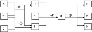 24.(10分)已知下列框图中的A为天然气的主要成分,C、F为常见固体单质,G为绿色粉末。它们相互之间存在下列转化关系(反应条件略)。试根据下图所示的转化关系回答下列问题:
