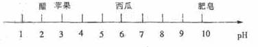 A.醋 B.苹果汁 C.西瓜汁 D.肥皂水