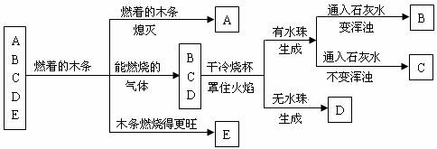 有A、B、C、D、E五种气体,它们分别是氧气、氢气、一氧化碳、二氧化碳、甲烷中的一种,对其进行如图所示的实验:
