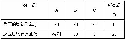 9.在一密闭容器中,盛放A、B、C三种物质各30g,经电火花引燃,充分反应后,各物质质量变化如下: