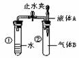 25、已知水的沸点随压强的减少而降低。现有如下图所示实验装置,夹子开始处于关闭状态。将液体A滴入试管②与气体B充分反应后,打开夹子,发现试管①内的水立刻沸腾。