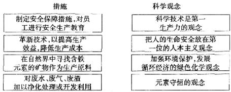 44.(4分)人类在利用化学方法改造物质的过程中,总是用一系列的科学观念作为指导,以铁的冶炼为例,请把左列中解决生产问题的措施与右列中对应的科学观念用连线连接起来: