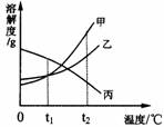 12.如图是甲、乙、丙三种物质的溶解度曲线,将甲、乙、丙三种物质t2℃时的饱和溶液降温至t1℃,所得溶液的溶质质量分数关系正确的是