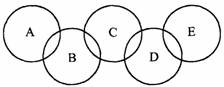 24. (4分)如图,A、B、C、D、E各代表铁、水、二氧化碳、硫酸铜溶液、氢氧化钡溶液中的一种物质。常温下相连环物质间能发生反应,不相连环物质间不能发生反应,且B的相对分子质量大于D。请填空: