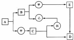 (1)写出有关物质的化学式:A_________、甲_________、E_________;