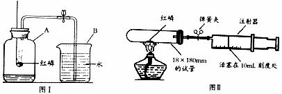 ③将少量红磷平装入试管中,将20mL的注射器活塞置于10mL刻度处,并按图Ⅱ中所示的连接方式固定好,再将弹簧夹紧橡皮管。
