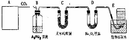 42、(6分)过氧化钠是一种淡黄色固体,能与二氧化碳反应生成氧气,可用于潜水艇中作制氧剂,供人呼吸,它与CO2反应的化学方程式为:2Na2O2 + 2CO2 = 2Na2CO3 + O2。某学生为验证这一结论,以大理石、盐酸和Na2O2样品为原料来制取O2,设计出如图所示的实验装置(C中无水硫酸铜起干燥作用):