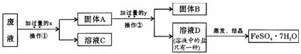 (1)操作②是____________,(2)固体A中含____________,y是____________。