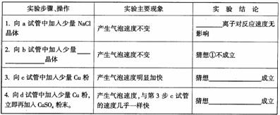 [猜想]:①加入的CuS04溶液中的SO42-使反应速度加快