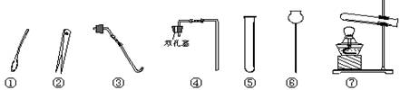 (1)仪器⑤的名称是 ;取用粉末状固体必须用到的仪器是 (填序号)。