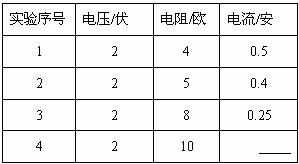其中第4次实验时电流表的指针位置如图丙所示,请把测得的电流数值填入表格中。