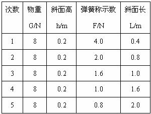 (2)小强选用了一把弹簧秤、一块8N的长方体重物、五块长度不同的由同种材料做成的光滑木板,按如下图所示进行了实验,实验时控制斜面高度为 0.2m不变。实验测得的数据如下表所示: