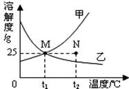 D.在t1℃时,100g乙物质的饱和溶液中溶质的质量是25g