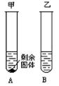 (3)20℃时,分别向盛有10g水的两支试管中,加入等质量的甲、乙两种固体物质,使其充分溶解,可观察到如下图所示的现象。