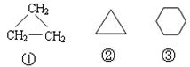 ⑷以碳、氢两种元素组成的环状有机化合物中,从含三个碳原子到含十个碳原子的碳、氢化合物依次按丙、丁、戊、己、庚、辛、壬、癸来标记碳原子数,并根据碳原子数命名为“环某烷“。如环丙烷,其化学式为C3H6,结构式如下图①,也可简写为下图②。现有一种由碳、氢两种元素组成的有机环状化合物,其结构式简写成下图③,该物质的名称是: ,化学式为: 。