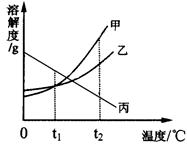 ⑶将甲、乙、丙三种物质t2℃时的饱和溶液降温至t1℃,所得溶液的溶质质量分数关系是