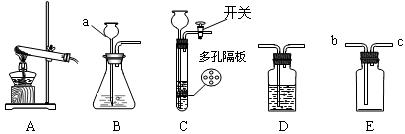 (3)若要制取二氧化碳,在B装置中装有石灰石,那么a中应加入___________。若要获得干燥的二氧化碳,还应选用D装置,并在该装置中盛放 (填写试剂名称)。如果用E装置收集该气体,则气体从_________端进入(填“b”或“c”)。