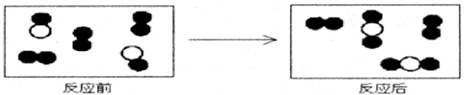 ”分别表示A、B、C三种物质的分子,下图形象地表示了某化学反应前后反应物与生成物分子及其数目的变化。