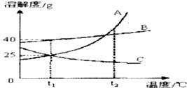 24.(4分)下图为A、B、C三种物质的溶解度曲线。