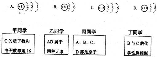 (2)课堂上老师给出了A、B、C、D四种粒子的结构示意图(如下图所示),