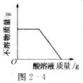 20.某固体可能由MgCl2、NaOH、BaCl2、Na2SO4中的一种或多种组成。取少量该固体于烧杯中,向烧杯中加入足量水搅拌后,观察到有白色不溶物存在;再向烧杯中滴加酸溶液。根据加酸过程中观察到的现象绘制了图2-4,结合图像判断下列说法中合理的是 ( )