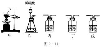 30.纯碱(Na2CO3)产品中常含有少量氯化钠。某厂生产的纯碱包装袋上标有“Na2CO3含 量≥95%”字样。为判断该产品中Na2CO3的含量是否达到要求,称取5.0g样品进行检验,可供选取的装置如图2-11所示。其中,丙装置中装足量浓氢氧化钠溶液,丁装置中装浓硫酸,戊装置中装水(提示:浓硫酸具有吸水性,不挥发,不与二氧化碳反应,碳酸钠受热不分解).