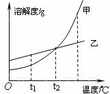 A.t1℃时,甲物质的溶解度小于乙物质的溶解度