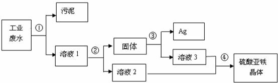 37.(9分)有一种工业废水,其中含有大量的硫酸亚铁,少量的银离子以及污泥。某同学设计了一个既经济又合理的方法回收银和硫酸亚铁晶体。方案流程如下: