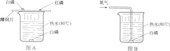 (1)用图A所示装置进行实验,观察到的现象是铜片上的白磷燃烧产生白烟:铜片上的红磷和水中的白磷不燃烧再用图B所示装置进行实验.观察到:不通氧气时,热水中的白磷不燃烧;通氧气时,热水中的白磷燃烧。根据上述实验得出,可燃物燃烧的条件是 。