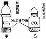 (1)我设计了甲、乙两个实验装置来验证,如图所示,实验现象为:甲一软塑料瓶变瘪,乙--“瓶吞鸡蛋”。