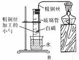 (2)小倩设计了如下图B所示的改进装置,其优点是不污染空气或操作简便或实验误差较小(只写一点)。从理论上分析,玻璃管内液面最终将上升至 处(填1、2、3、4),但实验测结果液面往往偏低,其原因可能是 (其他合理答案均可)。(只写一条)
