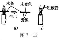 (1)点燃蜡烛,将一根小木条迅速平放入火焰中,约l S后取出,现象如图7-13a,这证明焰心 。