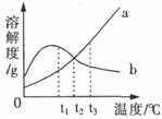 C.将a、b两种物质的饱和溶液从t3℃降温至t1℃,a有晶体析出,b无晶体析出