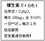 ①当“Vc”完全来自右图的“维生素C”时,每天至少服用 次;