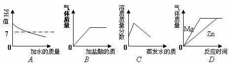D.将足量的金属镁片和锌片分别和等质量、相同质量分数的稀硫酸混合。