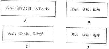 7.实验室的药品要分类摆放,以下是四个药品橱所存放的药品。实验室购进一瓶锌粒,应存放于