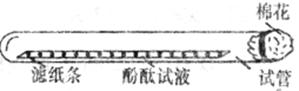 32.如下图所示,在试管中放有滴加无色酚酞试液的滤纸,管口用脱脂棉塞好。用滴管向脱脂棉上滴10-15滴无色的浓氨水,发现滤纸上的酚酞液滴由试管口向试管底依次逐渐显红色。分析上述实验现象,你能得到哪些结论?
