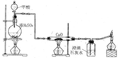 CO↑+H2O。实验室可利用下图装置制取CO并还原CuO。下列说法错误的是: