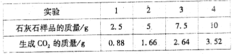 16.某学校化学兴趣小组的同学为了测定石灰石中碳酸钙的质量分数,称取了四份石灰石样品(设该石灰石中不含其他碳酸盐),分别加入过量的稀盐酸进行实验。结果如下: