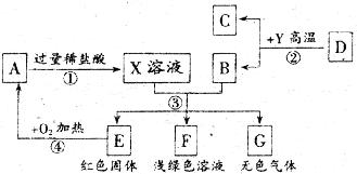 13.(4分)A、B、C、D、E、F、G为常见的物质,其中B、E、G属于单质,反应②是炼铁工业中的主要反应,下图是它们之间的相互转化关系。请回答