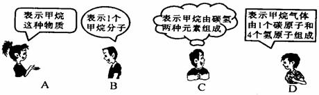 16.我国东部许多城市使用西气东输工程送来的天然气作为日常生活的燃料,天然气的主要成分是CH4。下列四位同学在讨论化学式CH4的意义,其中错误的是