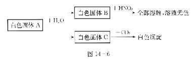 25.有一种白色固体A可能由CuCl2、Na2CO3、NaCl、Ba(OH)2、Ba(NO3)2、K2 SO4中的两种或几种组成,取少量A做如下实验,主要现象如图l4-6所示,请用化学式填空: