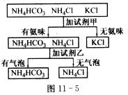 19.图11-5是某同学鉴别NH4HCO3、NH4Cl、KCl三种化肥的过程,其中试剂甲和乙可能是 ( )