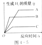 的质量与反应时间的关系如图4-5所示。根据图中所提供的信息,得出的结论正确的是(已知:A、B、C在生成物中均为+2价)