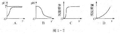 14.向稀硫酸中逐滴滴加氢氧化钡溶液直至过量,图l一2中V表示氢氧化钡溶液的体积。下列能正确反映实验过程中有关情况的是 ( )