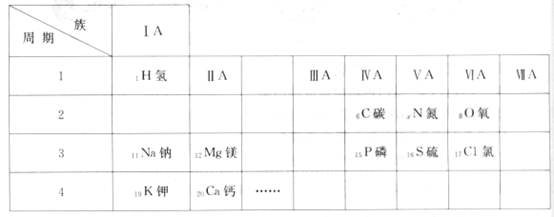 21.我们周围的物质世界是由l00多种元素组成的,为了便于研究元素的性质和用途,需要寻求它们之间的内在规律性。为此,科学家根据元素的结构和性质,将它们科学有序排列成元素周期表的形式。下表是元素周期表中的一部分,表中的元素是人体生命活动的常量元素。