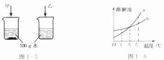 (2)图1-6中a、b分别表示上述两种物质的溶解度曲线,在 ℃时,这两种物质的溶解度相等;a表示的是 物质(填“甲”或“乙”)的溶解度曲线。