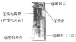 4.打火机给人们生活带来方便,下图是普通电子打火机的实物照片。下面可以做到符合燃烧条件能打火的组合是