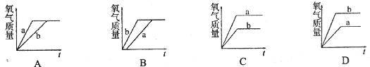 15.a、b两支试管,b试管内有少量二氧化锰,现同时在两个试管内滴加相同的过氧化氢溶液,能正确表示a、b两支试管放出氧气的量(纵坐标)与反应时间(横坐标)关系的图是