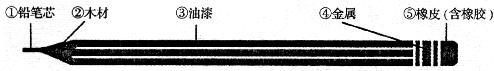 17.(5分)下图是同学们经常使用的铅笔,在组成铅笔的各种材料中:
